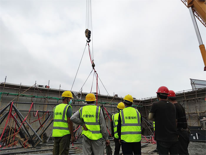 6.为确保.金山加油站球形网架安装顺利,应有详细的金山施工组织设计。网架安装必须保证结构的稳定性和不产生的附加变形。